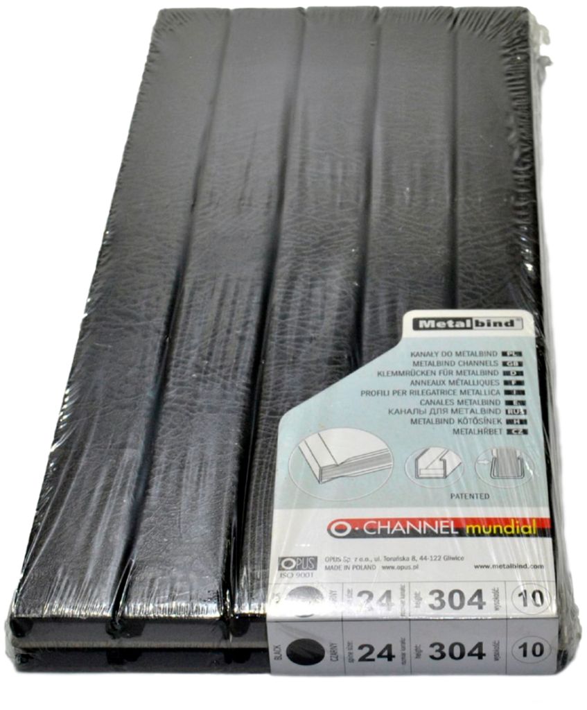 Канал дли переплёта с покрытием "Кожа" Opus 24 мм (191-220 листов), А4, черный, 10 шт.