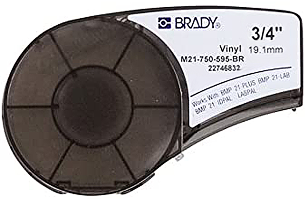 BRADY B-595 — самый популярный материал, который выпускается для всех принтеров. В ассортименте доступно огромное количество цветов и оттенков: белый, красный, жёлтый, зелёный, синий, оранжевый, чёрный, серый, коричневый, золотой, фиолетовый, прозрачный. Цвет надписи может быть тоже нескольких цветов: чёрный, белый, красный, зелёный, синий, жёлтый, оранжевый, пурпурный.
