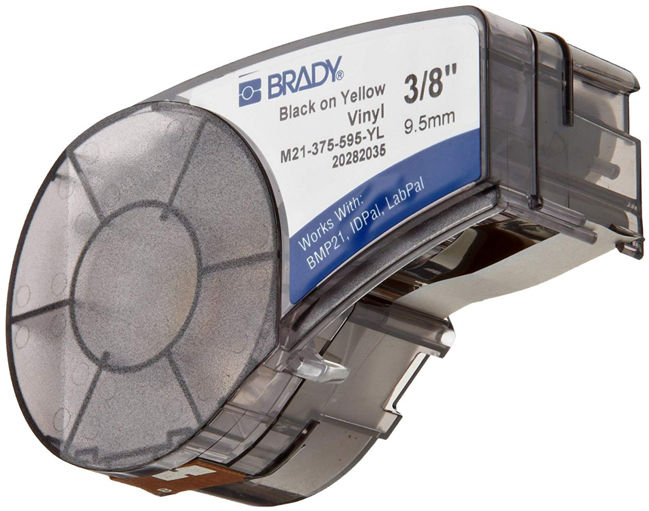 BRADY B-595 — самый популярный материал, который выпускается для всех принтеров. В ассортименте доступно огромное количество цветов и оттенков: белый, красный, жёлтый, зелёный, синий, оранжевый, чёрный, серый, коричневый, золотой, фиолетовый, прозрачный. Цвет надписи может быть тоже нескольких цветов: чёрный, белый, красный, зелёный, синий, жёлтый, оранжевый, пурпурный.