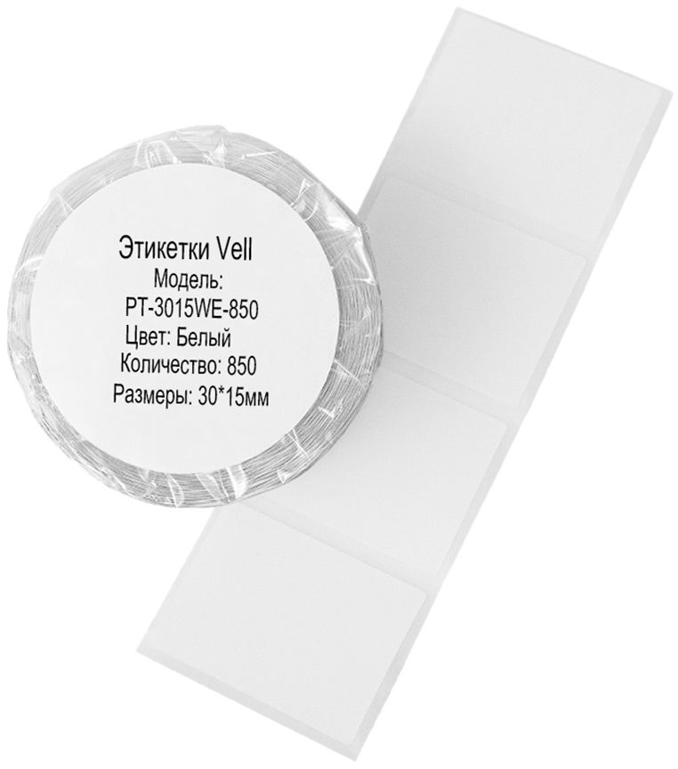 Эффективные этикетки от фирмы Vell PT-3015WE-850. Длина каждой этикетки равняется 15 мм, ширина - 30 мм. Отличаются идеальным отпечатком текста и изображения. Изделия выполнены в цвете белый. Самоклеящиеся этикетки Vell используют для печати разной информации, например о товаре: цена, вес, наименование, штрихкод, маркировка и пр. Выполнены из популярного материала полипропилен. Количество этикеток в намотке равно 850 шт. Идеальное решение для модели портативного термотрансферного принтера Puty PT-66DC.