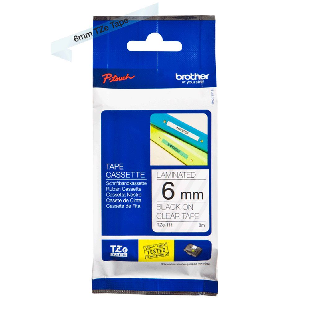 Плёнка для наклеек Brother TZE-111 чёрный шрифт на прозрачной основе, 6мм*8м