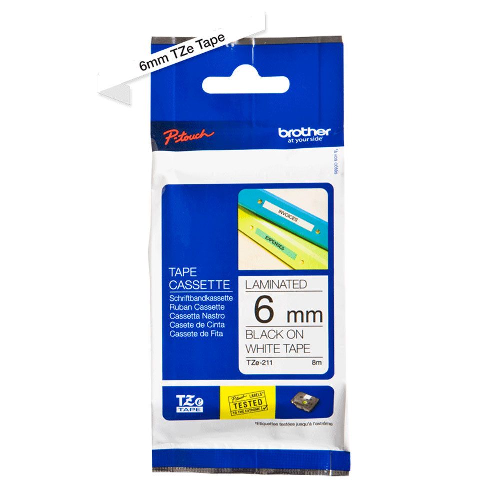 Плёнка для наклеек Brother TZE-211 чёрный шрифт на белой основе, 6мм*8м
