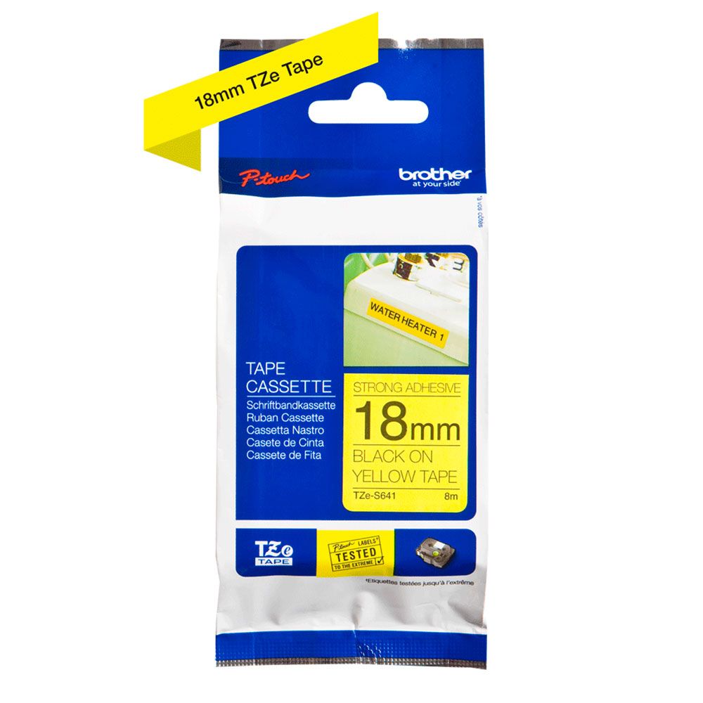 Плёнка повышенной адгезии для наклеек Brother TZES-641 чёрный шрифт на жёлтой основе, 18мм*8м